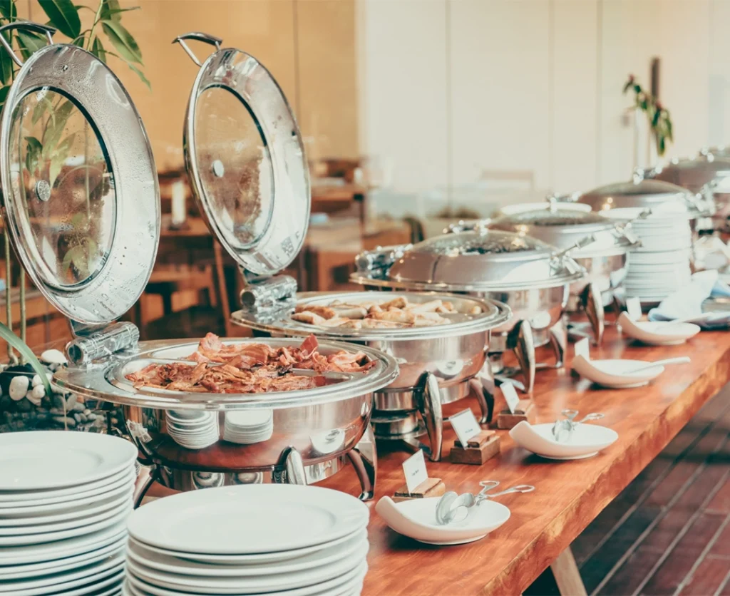All buffets are fully serviced and replenished throughout the event, ensuring guests always get fresh, hot, and delicious servings.